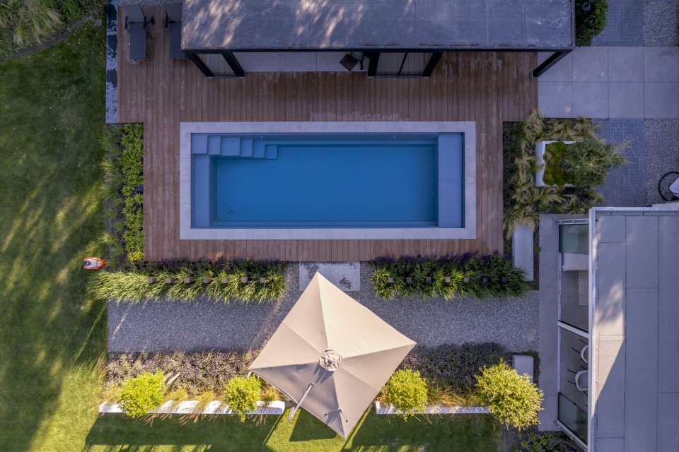 De handige sta-rand rondom het zwembad biedt de mogelijkheid om even tot rust te komen na een intensieve zwemsessie of om overal veilig het zwembad te verlaten. De veiligheidsrand net onder het wateroppervlak zorgt ervoor dat het lamellendek niet verder het water in kan zakken. Dit garandeert extra veiligheid voor kinderen en huisdieren.